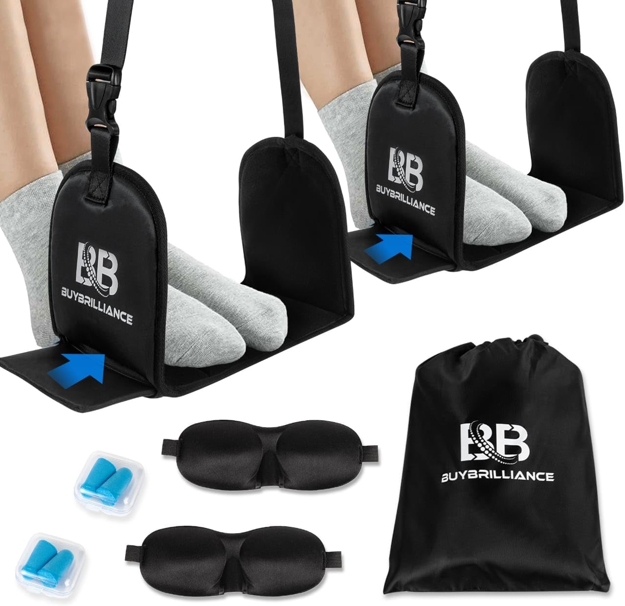 Comprehensive travel solution provides double the comfort through two adjustable airplane foot hammocks that accommodate couples, traveling companions, or frequent flyers who appreciate having backup equipment. Each hammock delivers effective in-flight leg elevation that reduces pressure buildup, minimizes stiffness, and significantly improves overall comfort during extended flights. The dual-hammock approach proves particularly valuable for family travel or business partners who can coordinate comfort solutions without competing for limited resources.